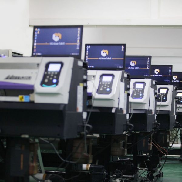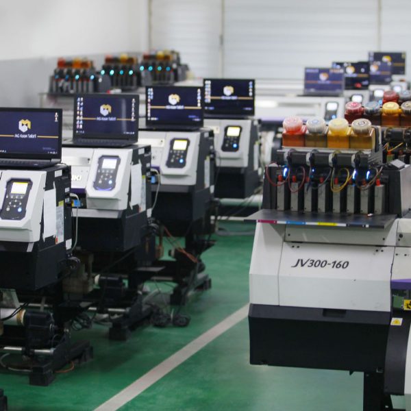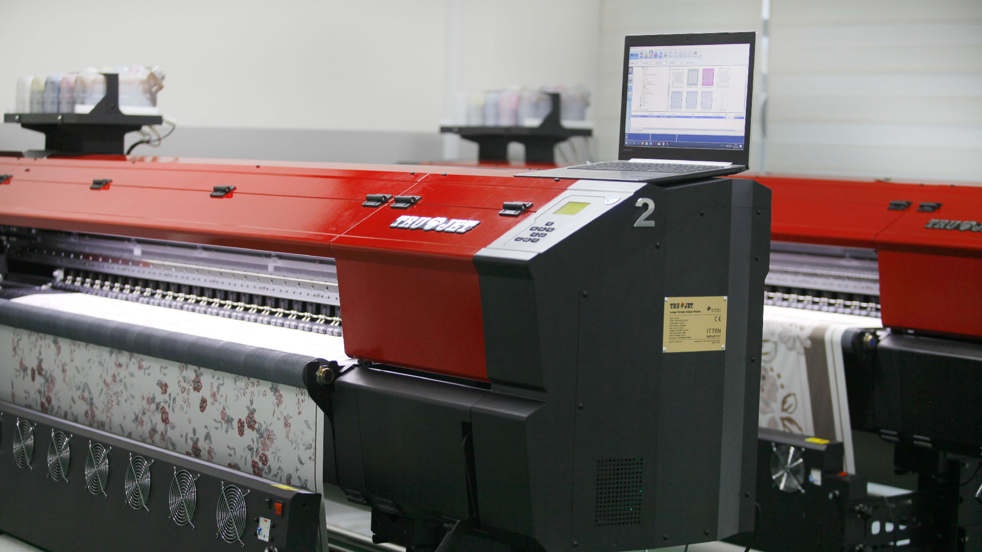 MG Kaan Tekstil bünyesinde bulunan 18 adet Mimaki JV-300 dijital baskı makinası , 2 ad Trujet dijital baskı makinası ve 2 ad Monti Antonio Transfer baskı makinası ile günlük 12.000 mt sevkiyat kapasitesine sahiptir.